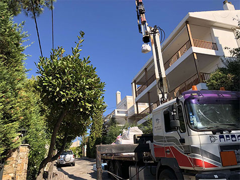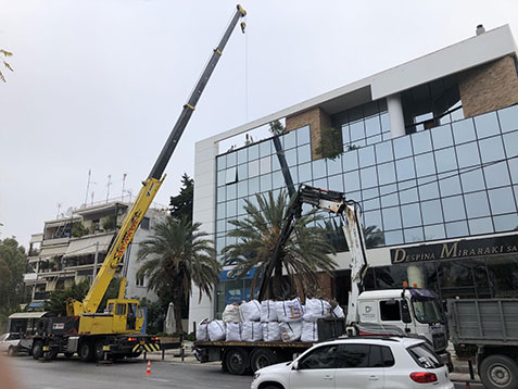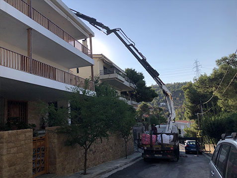 - Μεταφορά μπαζών με γερανό στην Παιανία