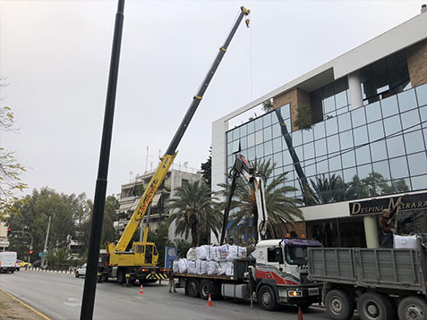 - Μεταφορά μπαζών με γερανό στα Γλυκά Νερά